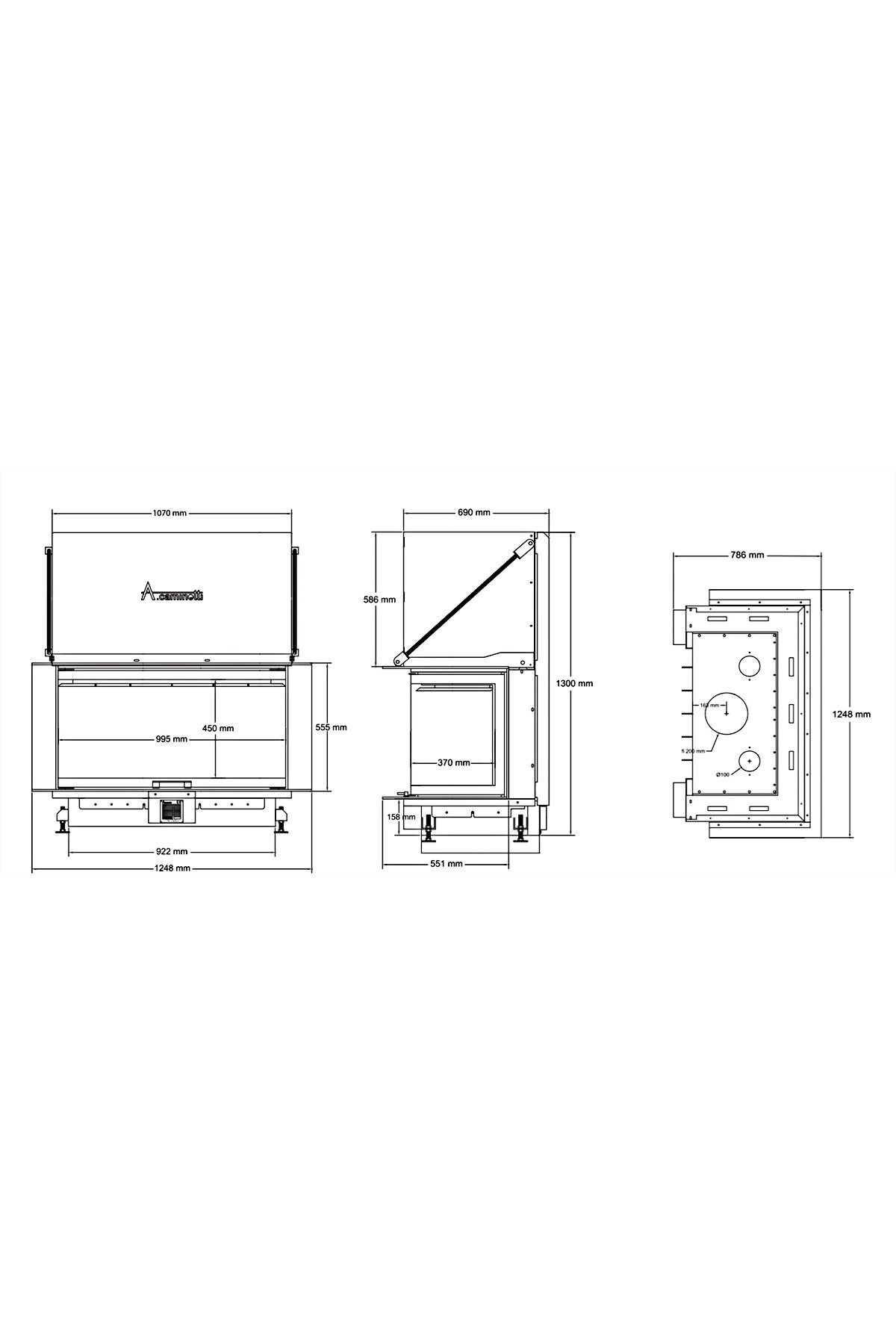 CRYSTAL 110 MAX 3 TARAFI AÇIK'da Ana cam cephe 850 mm, 2 kenar 370 mm ve pencerelerin yüksekliği 447 mm olup, 3 taraflı çıkarılabilir ocak için piyasadaki en rekabetçi fiyata sahiptir.