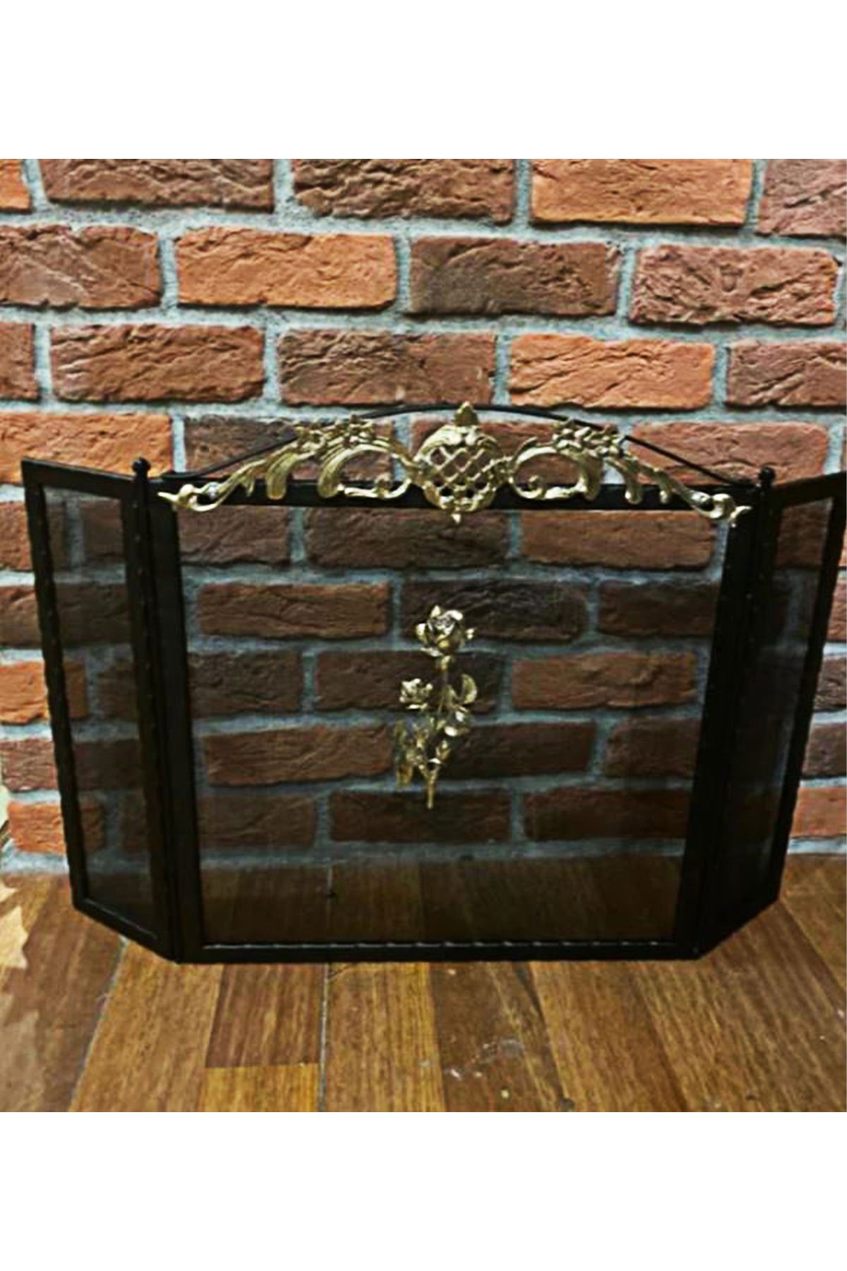 Gül Desenli Şömine Siperlik, Açık Şömineleriniz için sağlam yapılı ateş koruma siperliği.