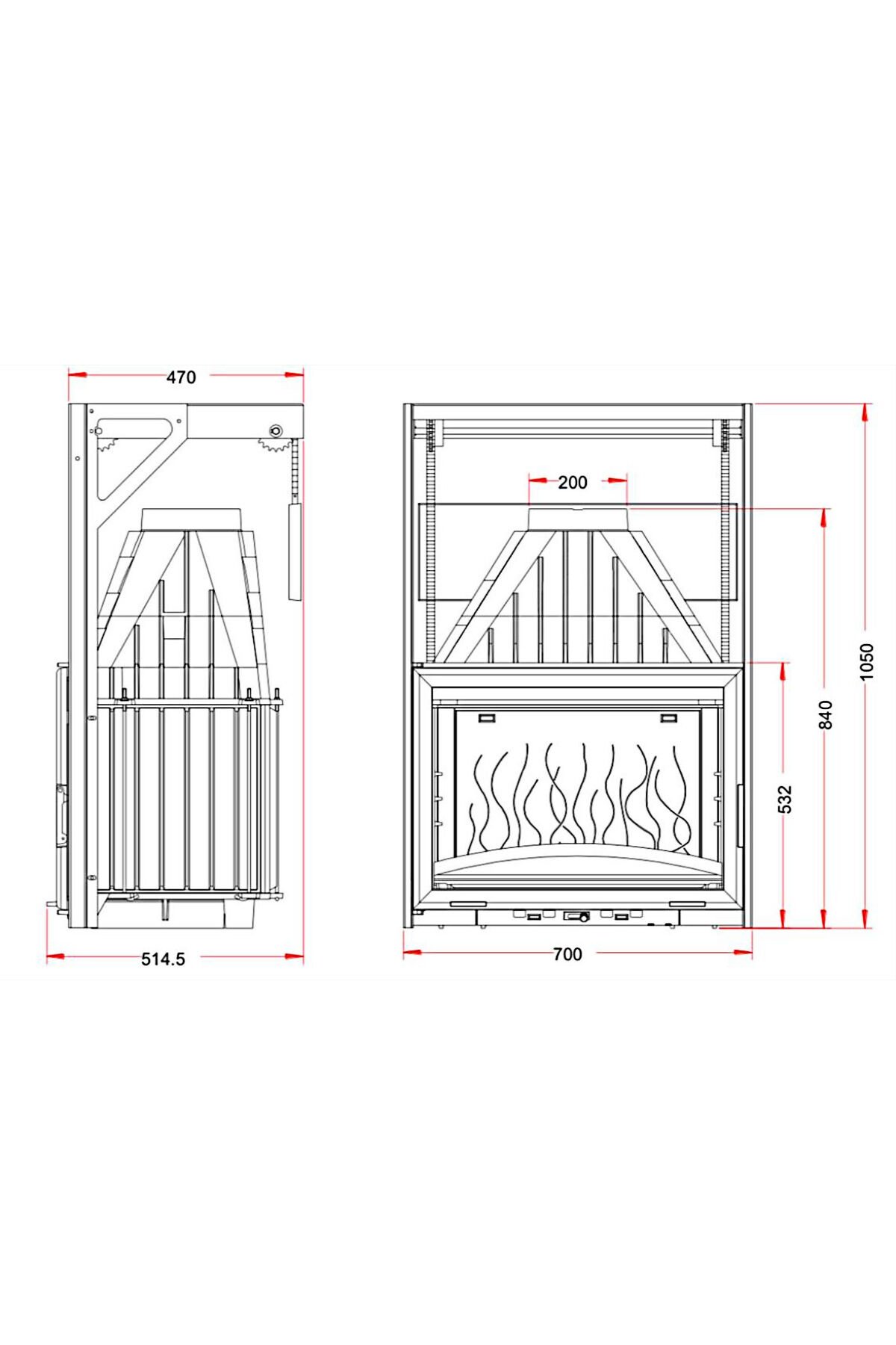 - İkincil yanma sistemi şömine ve ya sobanızda ilk havalandırma girişinden giren oksijenle yakılamayan gazın ikinci havalandırma sisteminden giren oksijen ile tamamen yakılmasıdır. İkincil yanma sistemi bulunan şömine hazne ve sobalarında verimlilik daha yüksek ve odun tüketimi daha azdır. 700 Grande Vision Asansörlü bu özelliğe sahiptir.