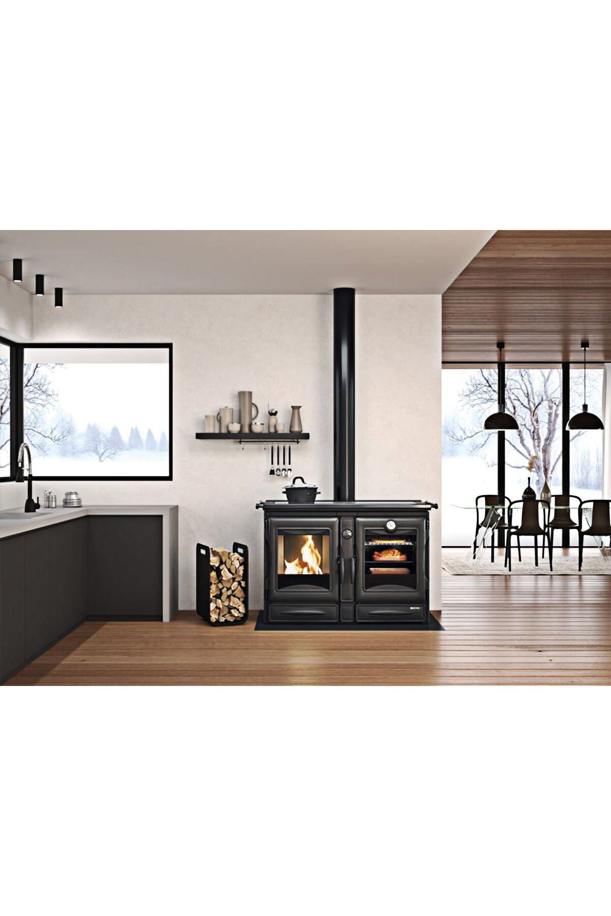 La Nordica Alaska Antrasit Kuzine Soba’nın ön tarafında yer alan iki büyük çift camlı pencere sayesinde ateşi ve fırında yemeğinizi rahatlıkla izleyebilirsiniz. Kuzinenin üst kısmında geniş bir pişirmeyi mümkün kılan üç adet pişirme yüzeyi bulunmaktadır. Ancak La Nordica Alaska Antrasit Kuzine Soba sadece yemek hazırlamak uygun değildir . Ateşten gelen ısı dışarıya doğru yayılır, böylece mutfak sobası soğuk kış aylarında ana ısıtma sistemine mükemmel bir katkı sağlar. Yaz aylarında, yanma odası bir el klapesi kullanılarak küçültülebilir, böylece odaya daha az ısı yayılır.