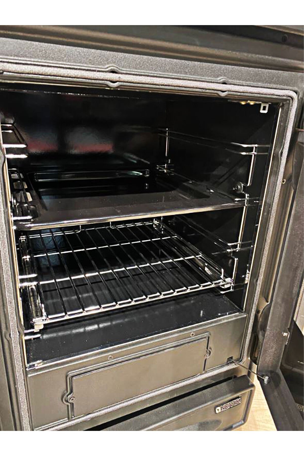 Alaska Antrasit Kuzine Soba, Kuzine mücevher gibi özel bir parçadır ve aynı zamanda serinin en büyüğüdür. Bu mutfak sobası ile nostalji modernlikle buluşuyor. Fırının dökme demir kaplaması, büyükannenin mutfağında oturup yemeklerin nihayet hazır olmasını bekleyemediğiniz günleri andırıyor. Aynı zamanda iki kapıdaki uzatılmış kulplar modern bir tasarım sağlar.