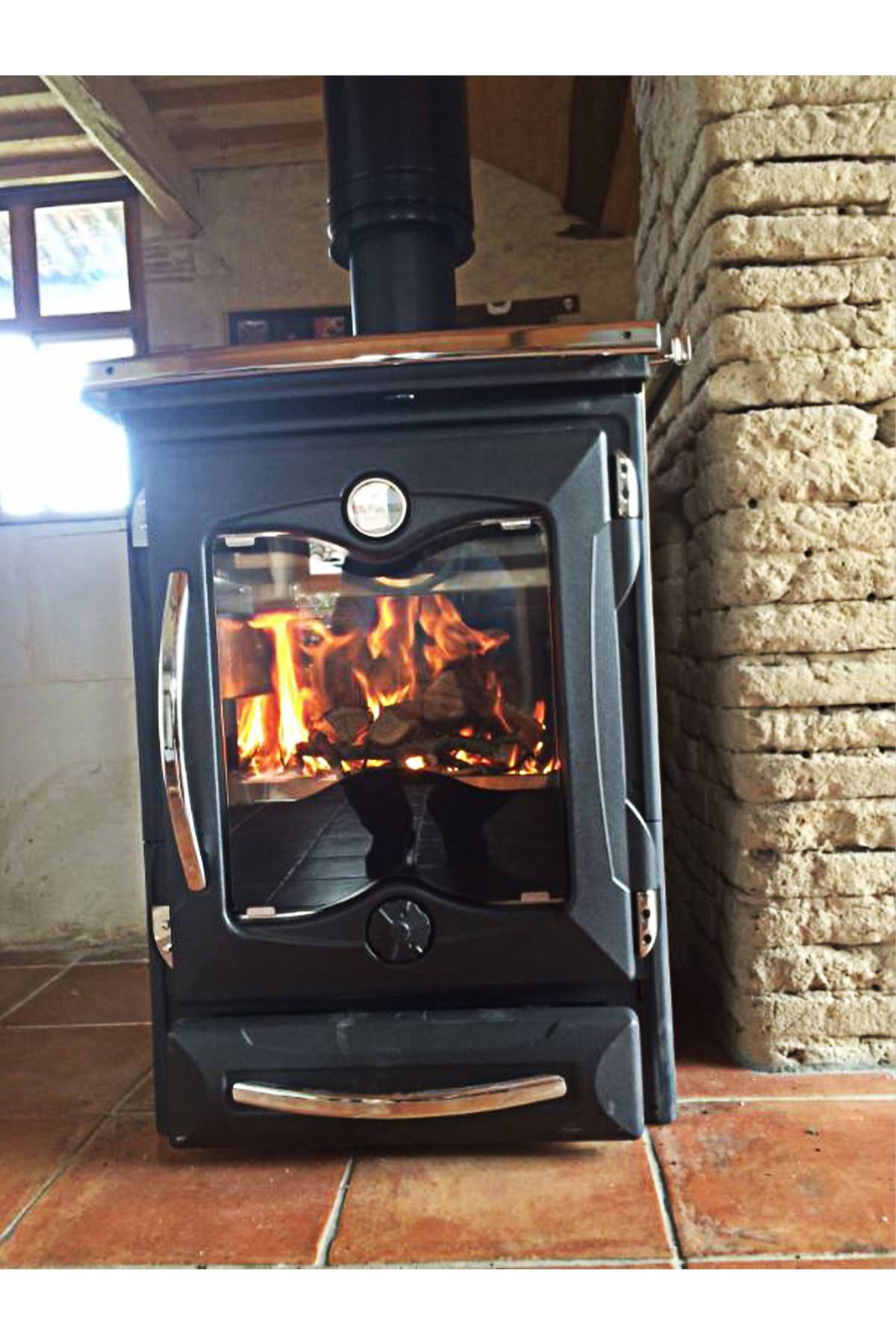 Hava kaynağının akıllı yönlendirmesi, geniş izleme penceresinin is tutmasını önler, böylece her kullanımdan sonra pencereyi temizlemeniz gerekmez. Pencere çift camlıdır. İç kısımdaki seramik cam 750°C’ye kadar sıcaklıklara dayanabilirken, dış kısım temperli camdır.