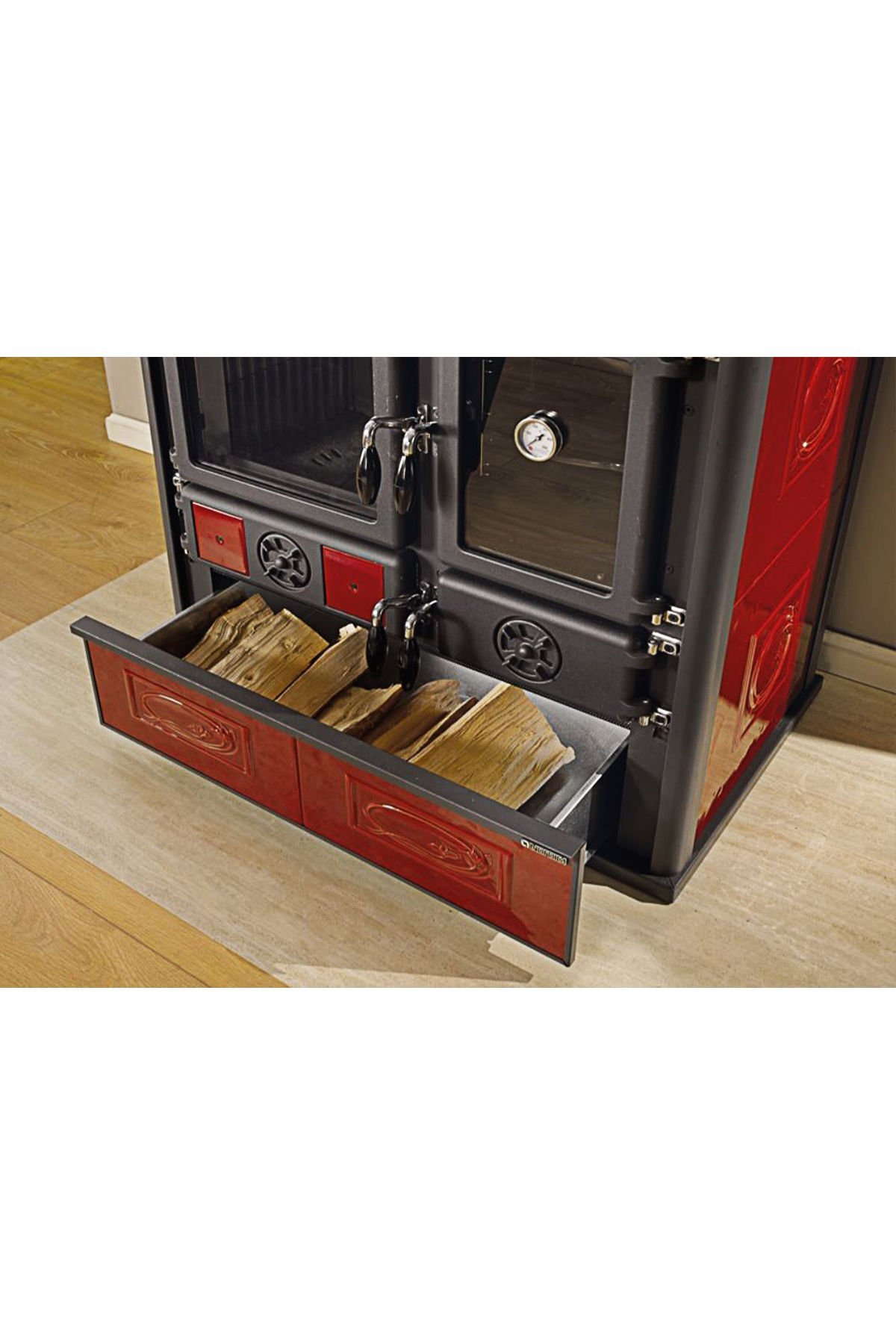 Fırının altına, bir ısıtma bölmesi entegre edilmiştir. Odun kurutma çekmecesi en alttadır. İçine isterseniz kurutmak için odun koyabilir veya fırın kapları veya tencere gibi diğer malzemelerinizi depolayabilirsiniz.