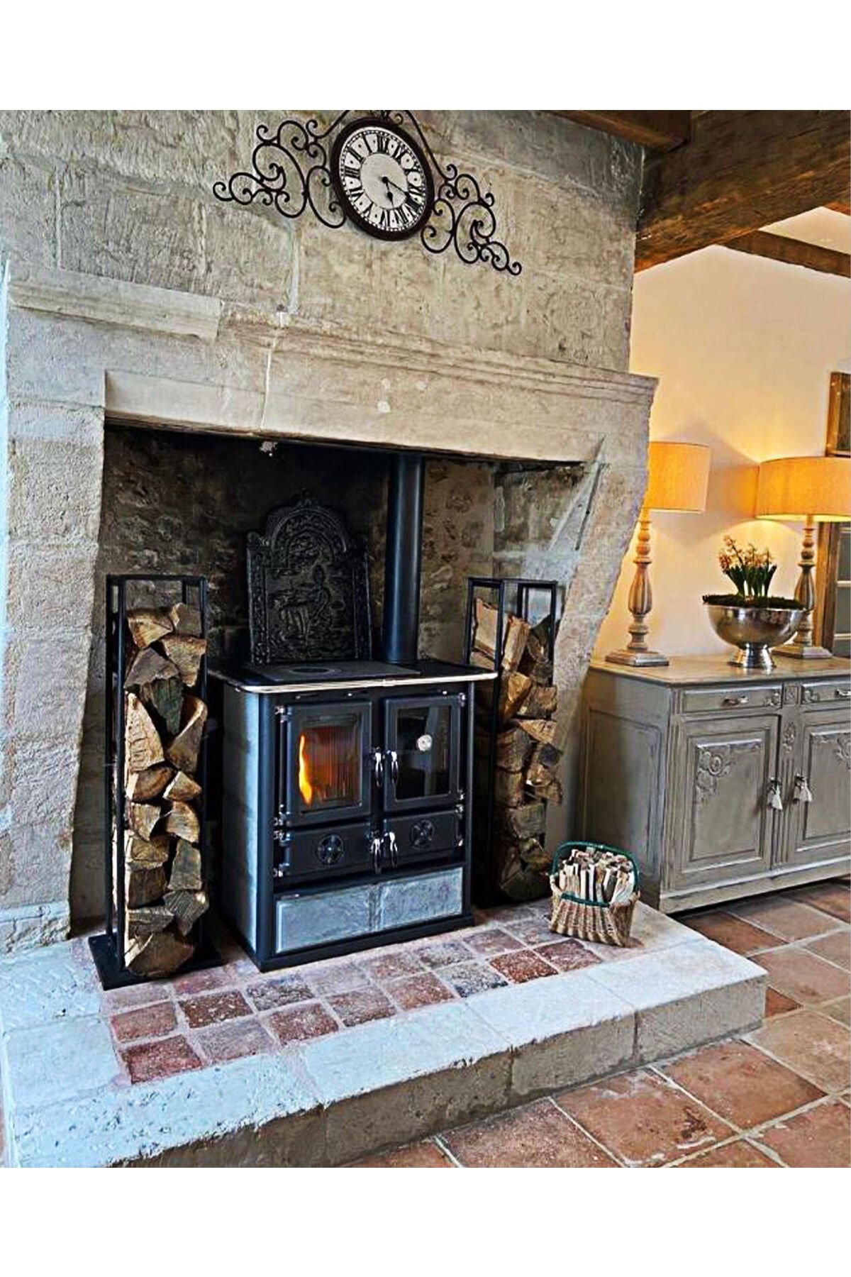 Rosetta BII Doğaltaşlı Kuzine Soba’nın odun kurutma çekmecesi çok geniştir, böylece içine yeterince kütük konulabilir. Bu, yemek pişirirken odun getirme zahmetinden kurtarır. İsterseniz bu bölümü tencereleriniz depolamak içinde kullanabilirsiniz. Rosetta BII Doğaltaşlı Kuzine Soba’nın kalbi olan yanma bölümü, ahşap çekmecenin üzerinde yer alır ve yanında da fırın bölmesi bulunur.
