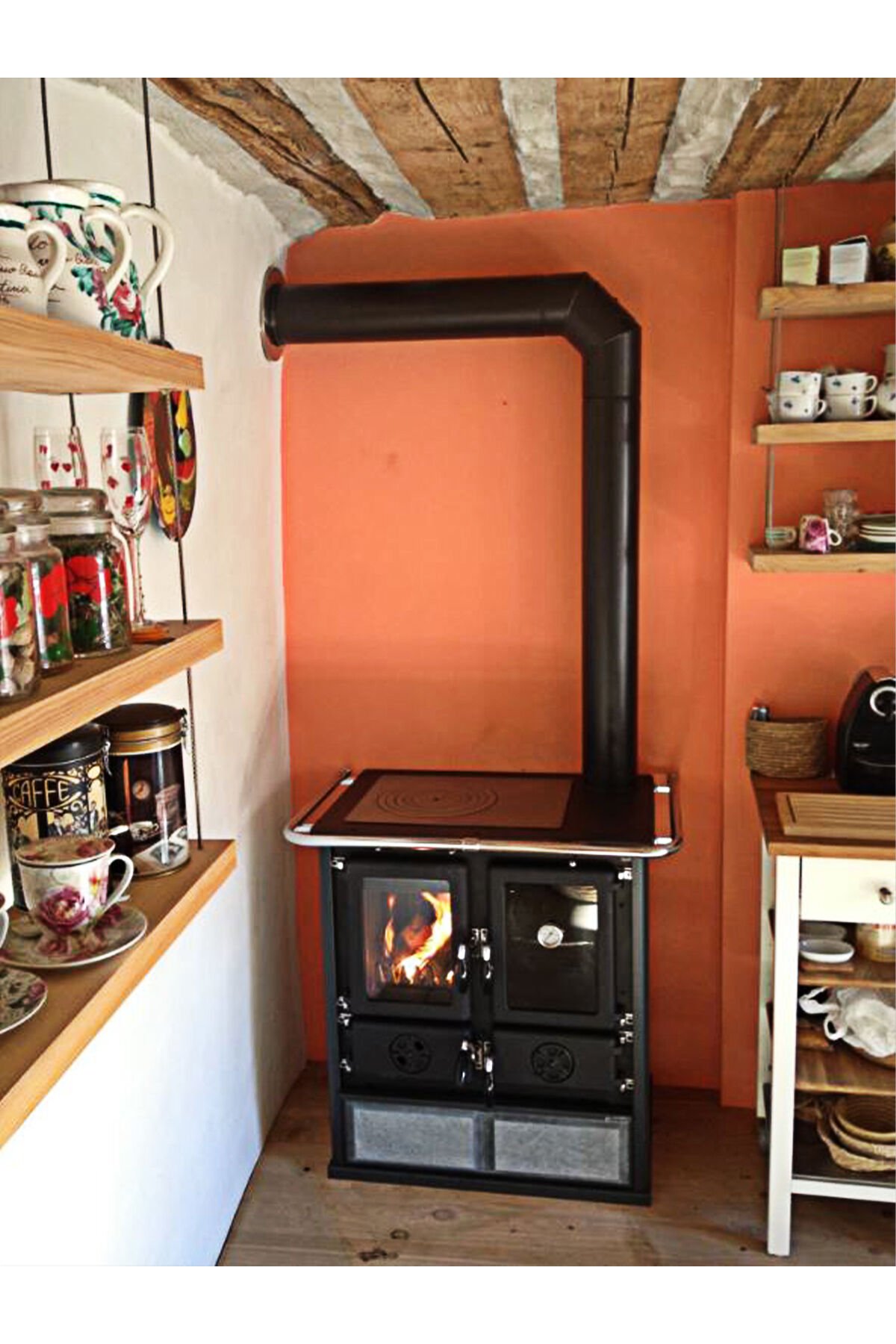 Rosetta BII Doğaltaşlı Kuzine Soba, daha az alana sahip mutfaklar ve evler için uygundur.