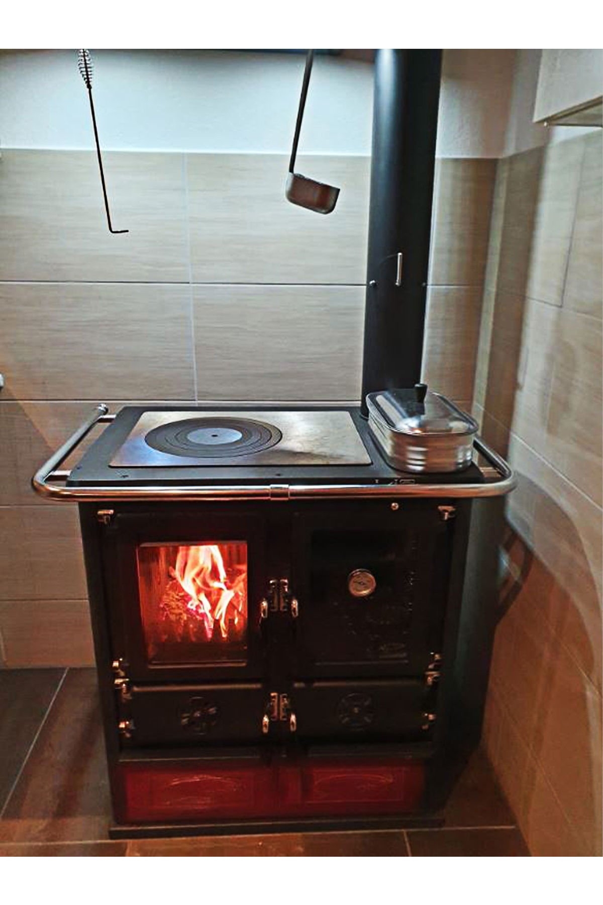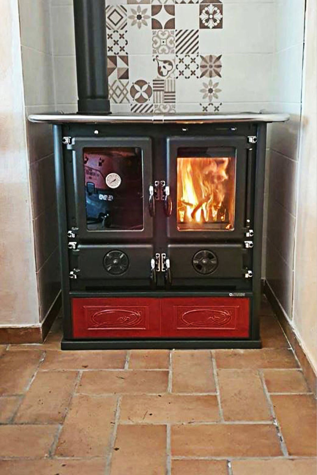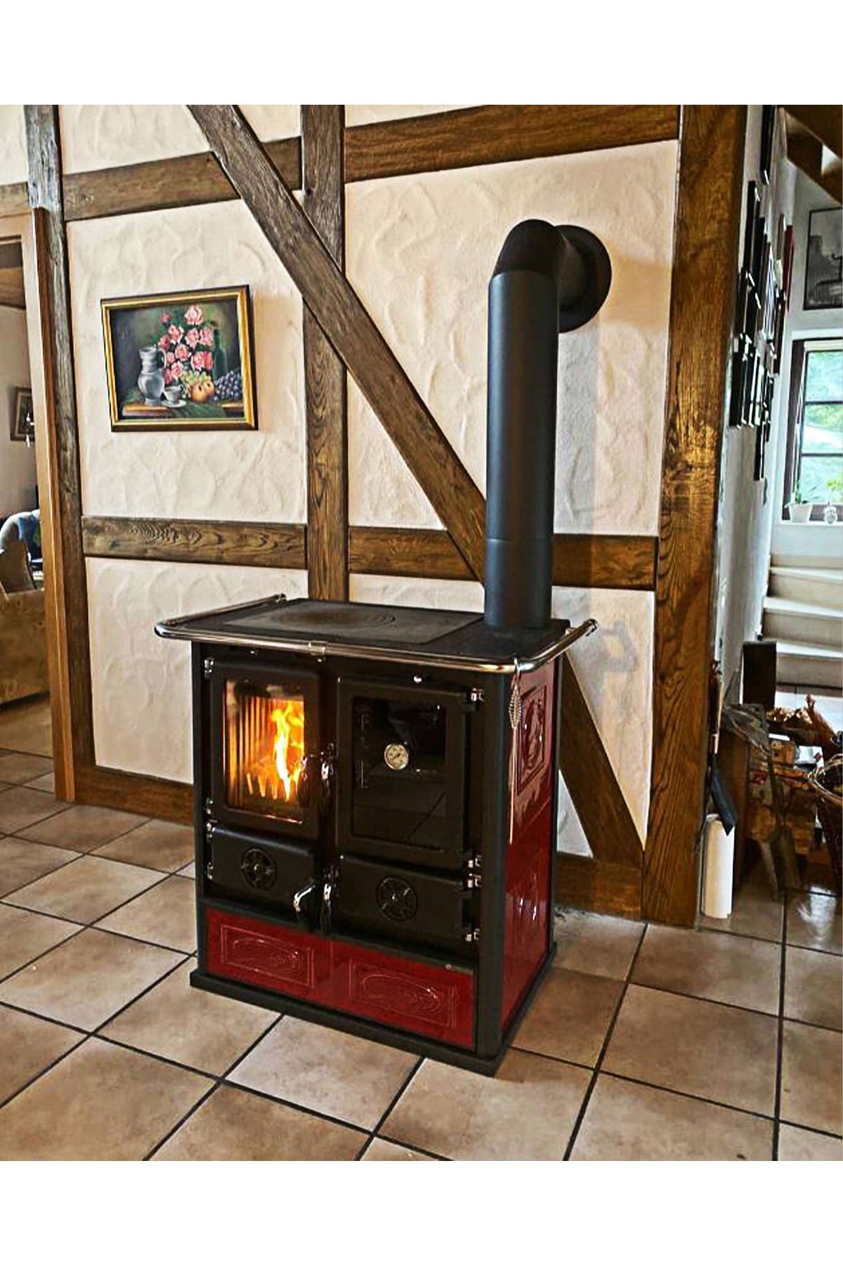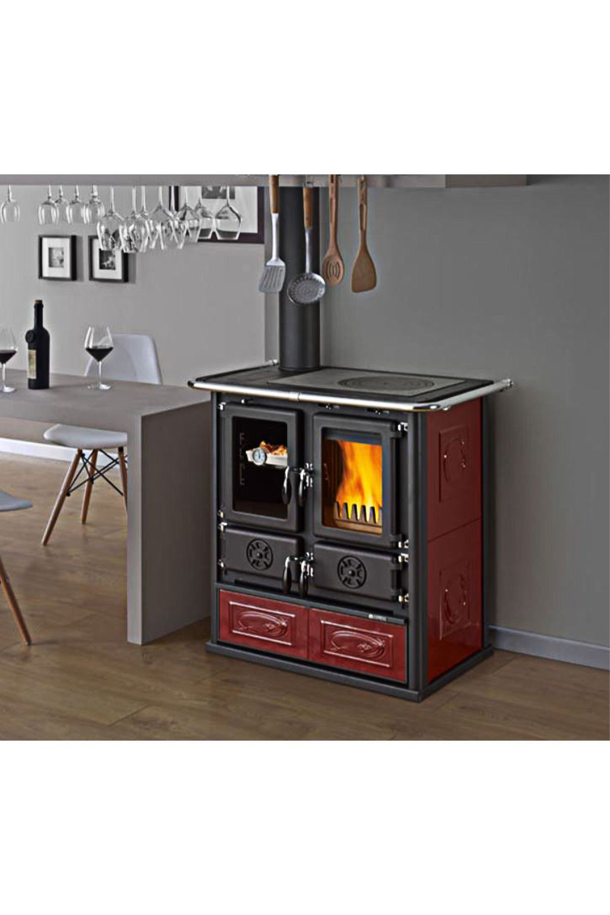 Rosetta BII Kırmızı Kuzine Soba, daha az alana sahip mutfaklar ve evler için uygundur.