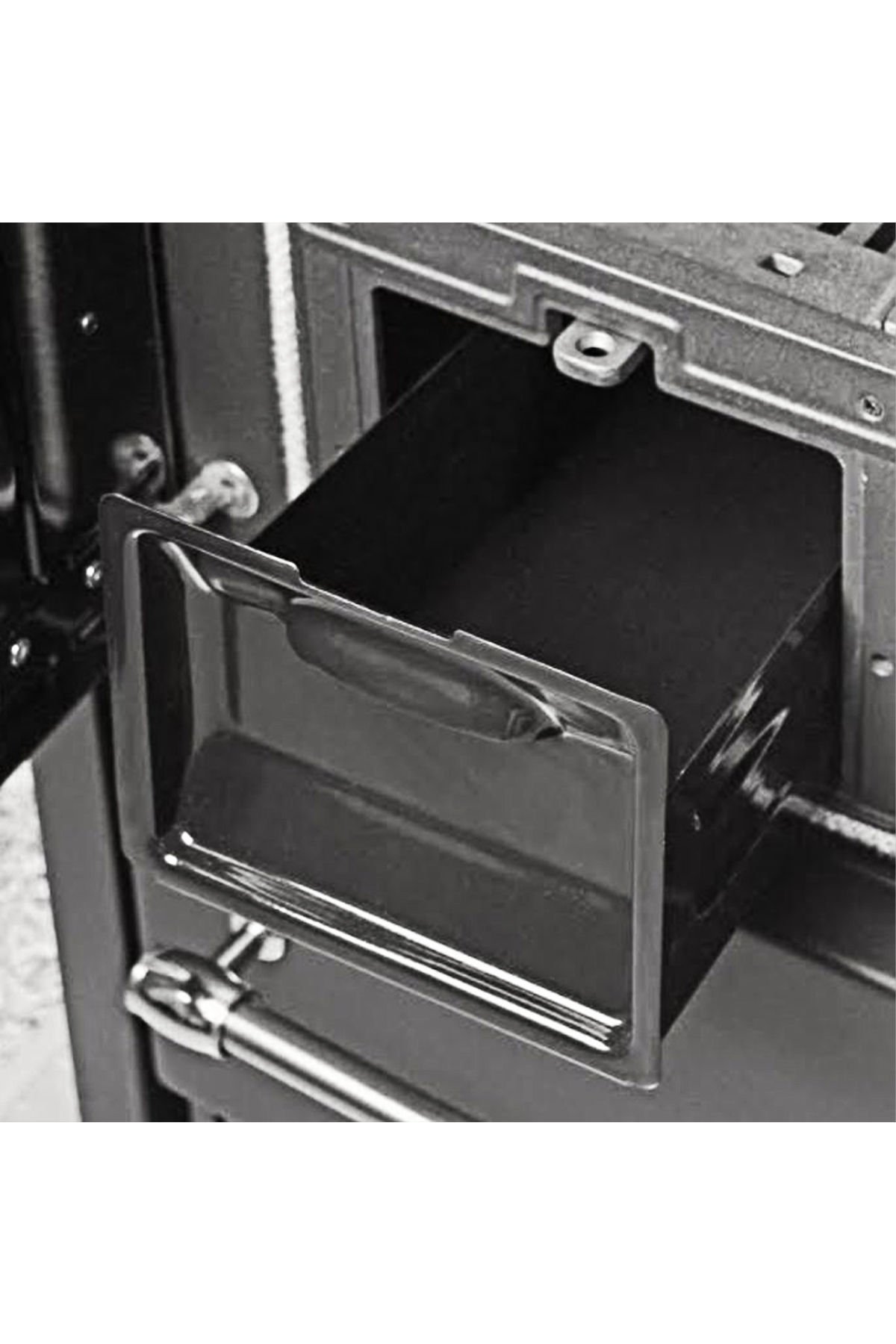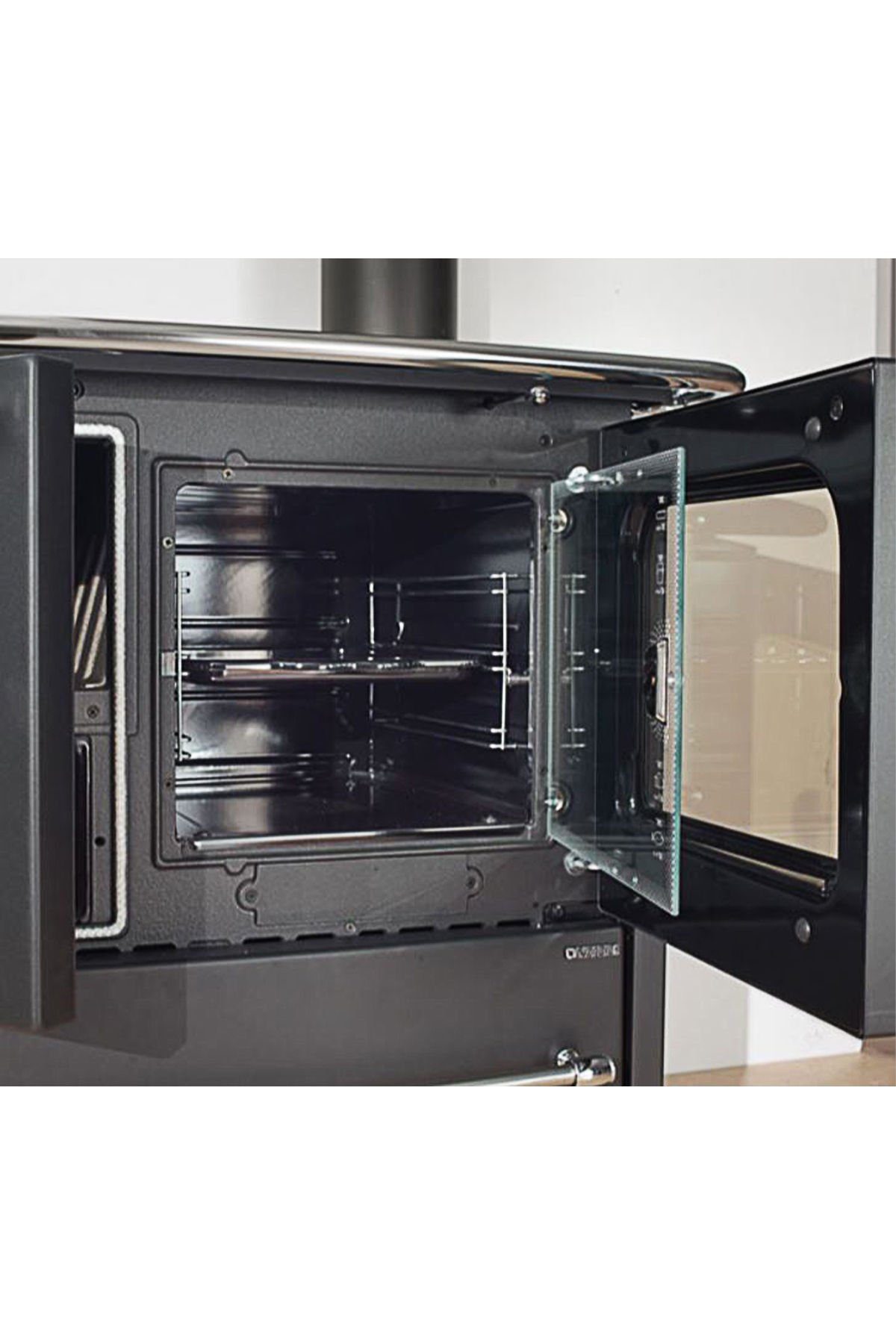 Sovrana Easy Evo 2.0 Antrasit Kuzine Sobası'nın Solda, kapısı çift camlı ve 700 ° C’ye kadar ısıya dayanıklı olan dökme demir yanma bölümü bulunmaktadır. Sağ taraftaki emaye fırında üç fırın tepsisi veya bir ızgara için yer vardır. Teslimat kapsamına bir fırın tepsisi dahildir. Büyük, iki bölmeli kapı sayesinde yemeklerinizi her zaman göz önünde bulundurursunuz. Sovrana Easy Evo 2.0 Antrasit Kuzine Sobasının alt bölümünde büyük bir depolama çekmecesi bulunmaktadır. Bu bölümde odunlarınızı kurutabilir veya tencerelerinizi saklayabilirsiniz.