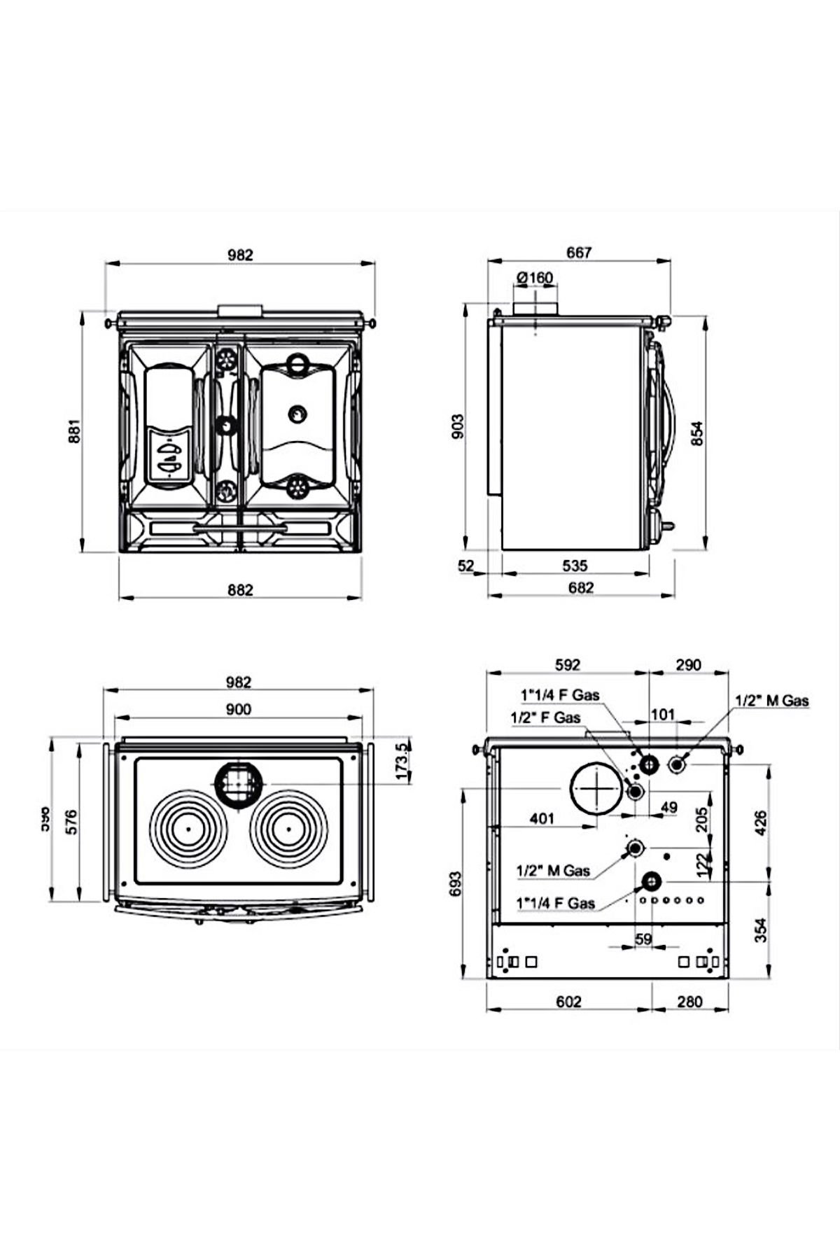 - Termo Suprema Compact DSA Antrasit Kuzine Soba Özellikleri: Emaye dökme demir kaplama • Panoramik emaye fırın (55 l) • Vitrifiye dökme demir çerçeve • Cilalı dökme demir ocak ve halkalar • Odun da kurutulabilen depolama çekmecesi • Ayarlanabilir birincil hava, yanma sonrası sistemli önceden ayarlanmış ikincil ve üçüncül hava • DSA güvenlik cihazı (DSA) vana dahil değildir)